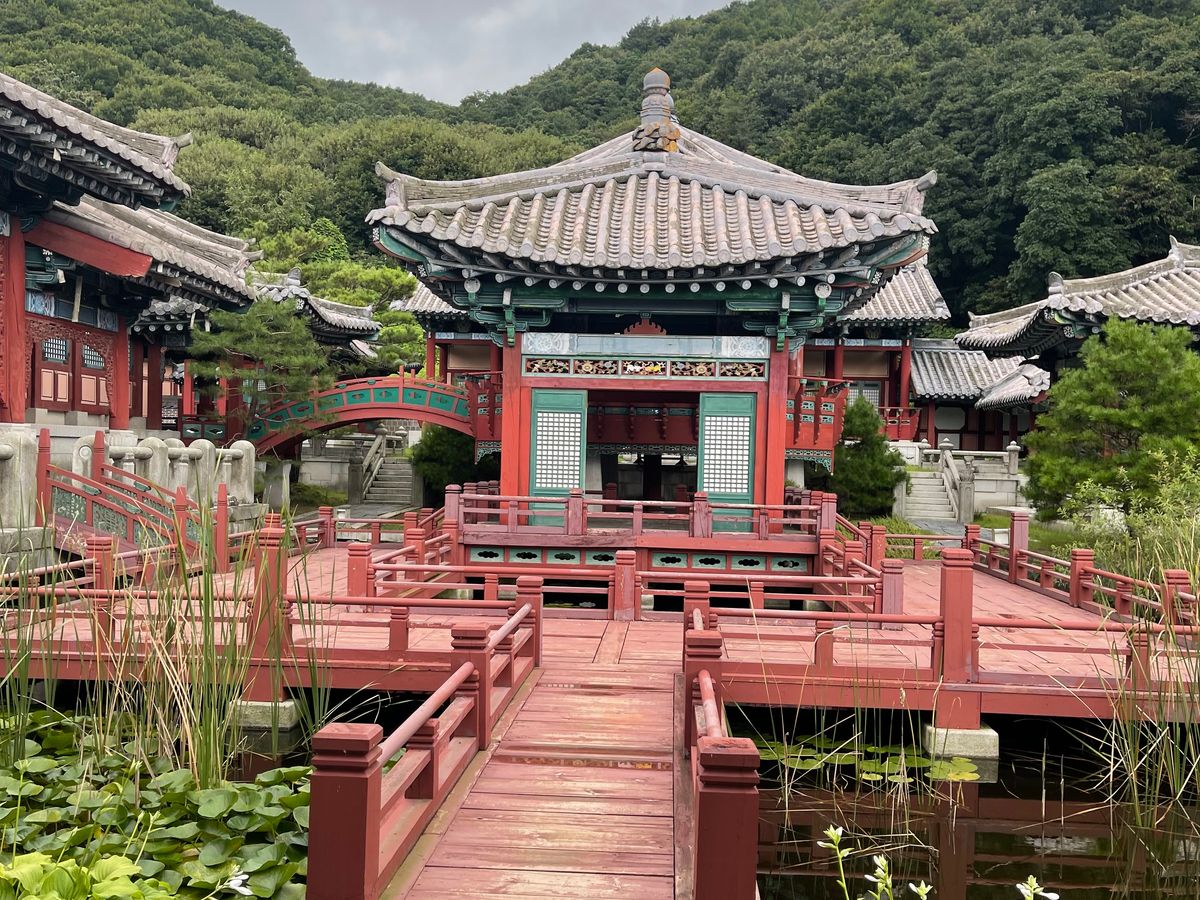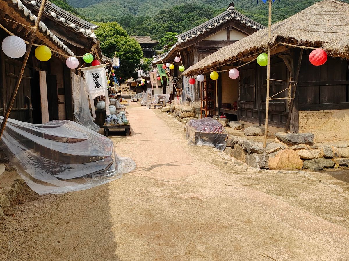 チャングム、イ・サン、赤い袖先など見覚えのあるセットがあり、楽しかったです。当日は撮影をしていたようで、ホールのような建物に車が止まっていました。