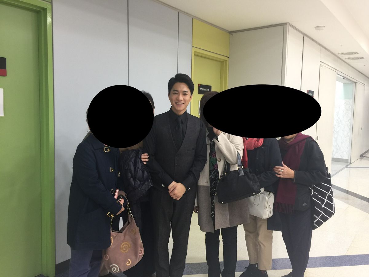 控え室の前を通りかかったときにひょっこり中から出てきた人はキム.ヨンミン さんでした。びっくりされた様子でしたが快く写真を撮ってくださいました。