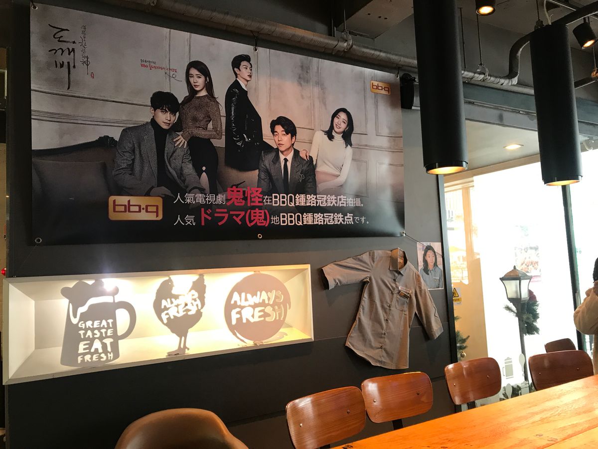 トッケビハウスは、間近では見れず残念でしたが、サニーのチキン店は店内で写真撮影ができ、ウンタクの制服と死神の帽子、トッケビの大きなパネル展示がされており、キムシンとウンタクの店前でのシーンと、店内でのキムシン、死神、サニー、ウンタクの面白いシーンがモニターで流れており、めっちゃ嬉しかったです‼️