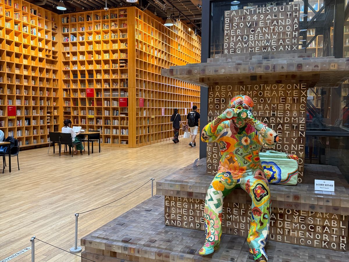 ツアーの後半では、ヘイリ芸術村を車窓から眺め、個性的な建物やアートが点在する街並みに触れられたのが印象的でした。その後訪れたジノカフェでは、ゆったりとした雰囲気の中でコーヒーや紅茶、ジュースなどを楽しめ、緊張感ある前半との良い対比に。最後に立ち寄った知恵の森は、天井まで本が並ぶ圧巻の空間で、まるで物語の中に入り込んだような気分を味わえました。