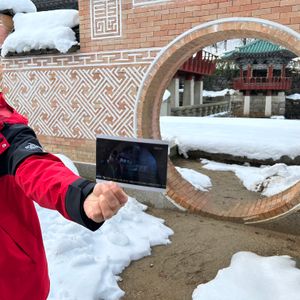 行きの車中から街並みの説明からエンタメ情報と韓ドラ 話が尽きる事なくお話ししてくださり、あっという間にパークに到着し、100年ぶりの大雪が降った韓国で前日までお休みされてましたが、私たちが行った日は運良く人も少なく、キムさんが丁寧に写真、動画を見せて下さりながら建物とドラマのシーンを重ねて見せて説明をしながら大雪が残る街並みを堪能できました。