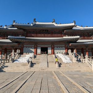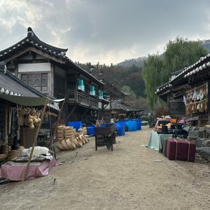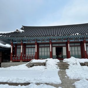 ツアーの集合場所に向かうとき、朝から想定外の大雪になり、突然ツアー中止になり、ガイドさんも予告無しに来ないのかなと不安になりましたが行くことになり、大雪で、ソウル郊外まで行けるのか心配でしたが無事着いて、本当はガイドなしの見学でしたが、ガイドしてくれましたので、ドラマの撮影所が、大長今、トンイなど、リアルさを感じ、きれいな雪化粧の宮殿の撮影所でした。施設内で可愛らしいcafeもあり、飲み物も美味しく、お土産も大長今に出てきたような小物に似ていたものが売っていたので嬉しかったです。そのあと明洞で餃子、饅頭の予定でしたが、ソウル市内でデモ隊があり、たどり着くのに時間がかかりそうなのか、ガイドさんが機転をきかせてソウル郊外の落ち着いた焼き肉のお店に行くことになり、かえってそこは、落ち着いた雰囲気のお店で付いてきた野菜やキムチ、わかめスープ、肉がとても美味しくてお店の人も親切でした。解散後自分らで行く場所を話すとガイドさんが行き方を分かりやすく教えてくれたので、地下鉄の移動もスムーズに予定通りの場所へ行けたので、感謝です。朝の突然の大雪見て、一時、もはや、ツアーもその後の行きたい場所も無理で宿泊先のホテルで過ごすしか手段がないのかなと焦りましたが、車の中でのガイドさんの話も気さくで全員楽しく過ごすことができて、いい旅ができました。いつかまた、今回と同じガイドさんのツアーで行きたいと思いました。