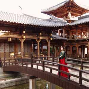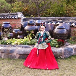 チマチョゴリと韓国時代劇が大好きで、こちらのツアーを見つけすぐに申し込みました!こちらのコースの第一号で参加者は私一人でした。一人参加でしたのでガイドの金さんが本当に一生懸命写真を撮って下さいました。セットの内容を知り尽くしていらっしゃるので「ここに立って見て下さい」「ここでこのポーズをして見て下さい」などベストポジションでポーズのアドバイスも頂き「本当に綺麗、女優さん見たい」とお声も頂き女優さんの様な気分にさせて下さり色々なセットで撮影して下さいました。ドラマシーンもアルバムを見ながらセットの説明もして頂きとても分かりやすく楽しめました。こちらに伺う前日に本物の王宮を見学し訪れましたが、セットとは思え無いお造りですごく迫力がありお色もとても綺麗な王宮でした。緑と赤の宮廷衣装が映え、素敵な写真になりました。