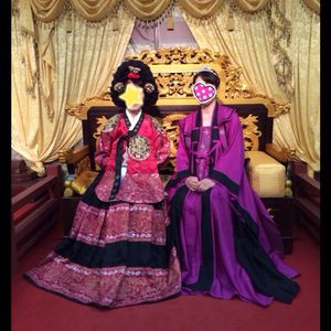 別料金で室内セットで、大好きな「善徳女王」のピダムと憧れの綺麗なミシルの衣装でパネル撮影と、また豪華なセットでミシルの衣装でこちらも金さんに撮影して頂き室外のセットとは違うイメージの素敵な写真になりました。2着衣装を着用しましたが着付けて下る方もテキパキと綺麗に着付けて下さいました。
