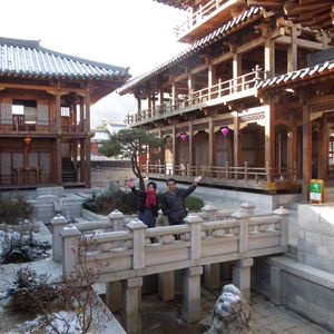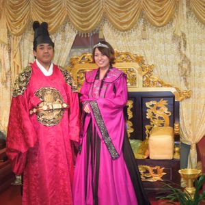 ソウルからバスで1時間半位。撮影所のセットとはいえ、本当によく出来ていて、朝鮮時代にタイムスリップしたかのよう。ガイドさんが写真つきでドラマに使われた場所を教えて下さり、とても楽しめました。帰る前の自由時間では衣装を借りて小さいながらもそれらしいセットの前で写真を撮ることもできました。ちなみに著作権もこともあり、ドラマそのままの衣装を借りられるのはここだけだそうです。お勧めです。(写真は自前でとります。プロカメラマンではありません)