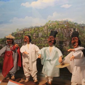 仮面劇の内容についての意味づけもスクリーンにでてくるので大変わかりやすく楽しめる内容でした。主に階級や男女の違いに対する風刺的な内容で、その成り立ちにも興味が持てました。ユネスコ無形文化遺産に登録されているそうです。また、坊さん役の方も無形文化財だそうです。ちょっと早めに抜ける方がいいとアドバイスを受けたので20分ほど早めにでましたが最後まで見る価値ありと私は思いました。ーみてませんけど。最後まで見ると色々混み合い大変です。その後は、仮面美術館に行ってお土産や準備を整えてソウルに戻りました。金さんはソウル在住なので美味しいお店について色々教えていただき、本当はホテル送りでしたが、ホテルまで戻ると食事できなくなるかもしれないので、お勧めのホテル近くの食事の店まで送ってもらいました。色々個別にこまめに対応していただけてとても良いツアーで、大変満足しました。これから考えている皆さんにもオススメです。