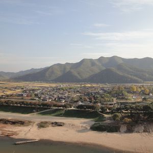 芙蓉臺(プヨンデ)から眺める河回村が