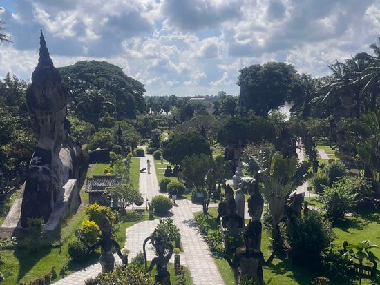 フライトまでの半日を利用して、ビエンチャンの主だった観光名所を巡ってもらいました。仏陀パークから友好橋、凱旋門に市内のお寺巡りと、ガイドのキョウさんとドライバーさんで効率よく行けるように考えてもらい、一通り行けたので良かったです。