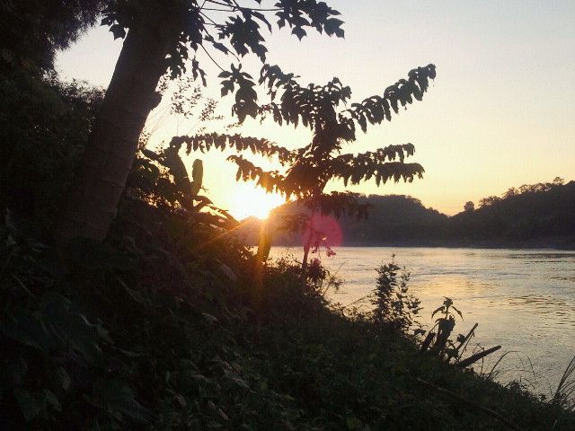 スローボートに乗り込みひたすら下っていきます。途中、サンコン村でボートをおります。