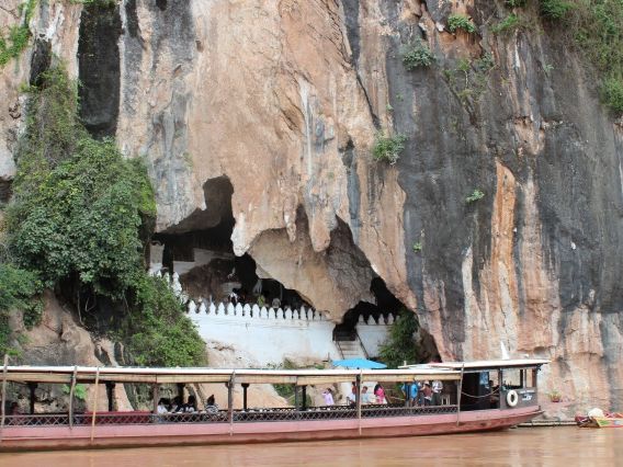洞窟までボートでメコン川をさかのぼります。途中ラオ酒の村に寄りますが、小さな村で人々ものんびりとしている様子でした。ラオ酒の試飲と、土産物として何本か買いました。日本に帰り、スーツケースを空けてびっくり、全ての瓶から酒が漏れていました。と言うことはしっかりと栓がしてないということです。外見はセロハンのような物で瓶の口がとめてありましたけどね~。パクオー洞窟は入るとすぐ仏像でいっぱいでした。もっと奥まで続いているのかと思ったけど、そうではありませんでした。特に、置いてある仏像が由緒あるものではなさそうです(間違っていたら教えてください)。帰りは織物の村に寄りましたが、紙漉きの村でもあるということで一つ紙の土産を買いました。ルアンパバーンについてからは町の寺を回りました。私たちは前日にプーシーの丘に登りましたので、その前にホテルに帰りました。その丘は町全体が見渡せて景色のいいところです。少し疲れますがぜひ行ってください。
