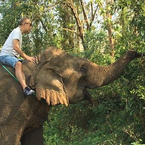 1時間かけて山の中や川沿いを象にのり、のんびり過ごしました。