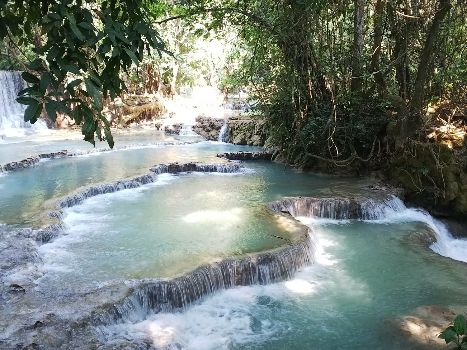 クアンシーの滝はクロアチアのブリトビッチェほどのスケールはないけど奥の滝は落差もあり、パワースポットです。どうせ水は冷たいだろう水着をホテルに置いて行ってしまったけど、泳げる水温だったと思いました。
