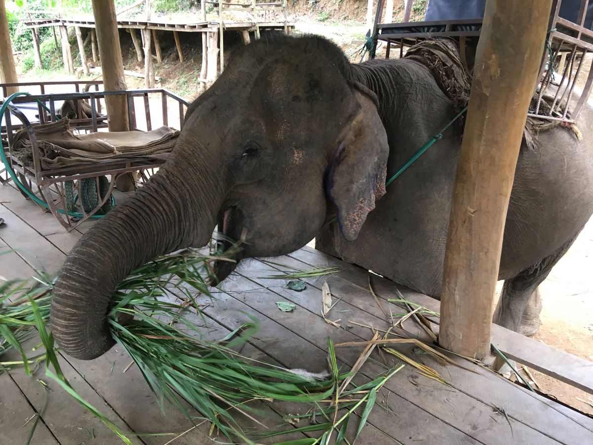 1時間かけて山の中や川沿いを象にのり、のんびり過ごしました。