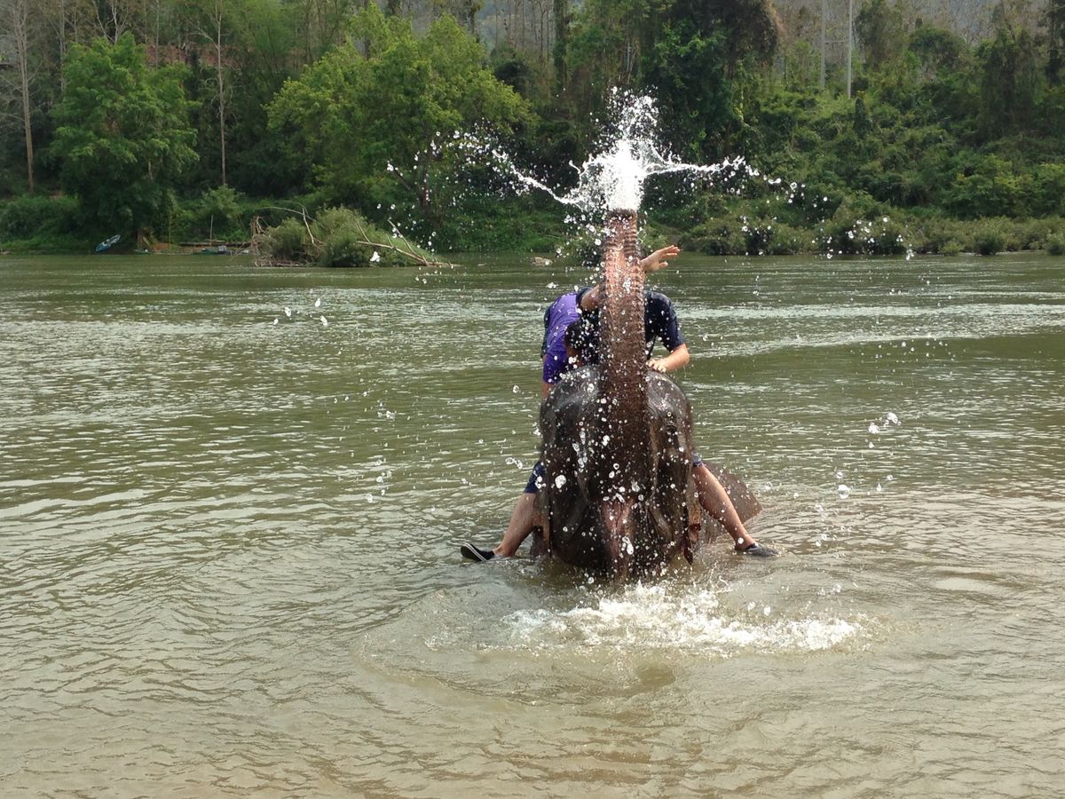 象に直接乗ってたくさん散歩をしました。メコン川で象と一緒に水も浴びました。象を自由に操るという感じではなく、象使いのトレーナーの方が指示を出してくれて、私たちはそのまま乗ってました。指示の仕方は教えてもらえるので、指示しようと思えば出来たと思いますが、まずラオ語なので私たちも覚えるのが大変です。進めと止まれくらいは覚えて私も指示していましたが、それが伝わっていたのかどうかはいまいち分かりません。象を自由に操るという感じではありませんでしたが、私は象とあれだけたくさん触れ合えてとても満足です。本当に可愛いかったです。