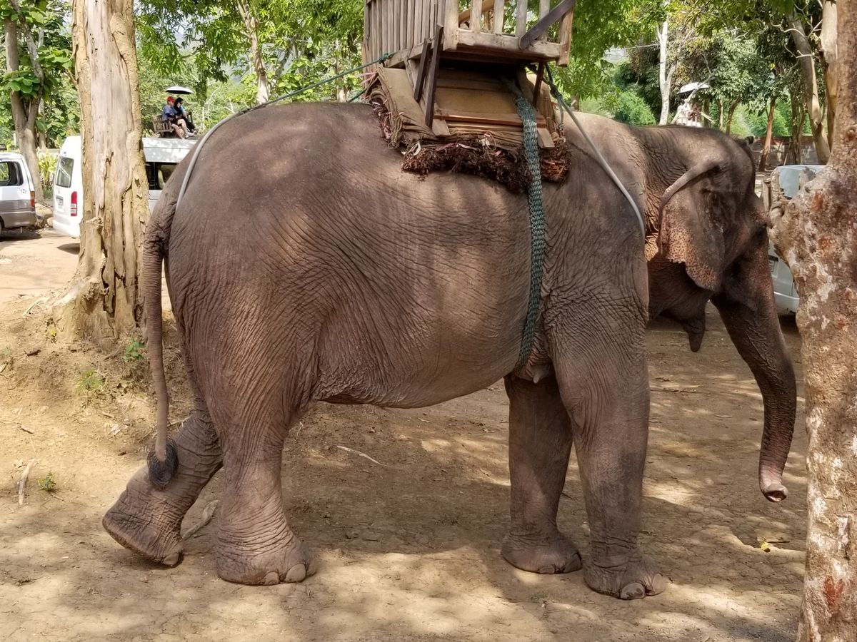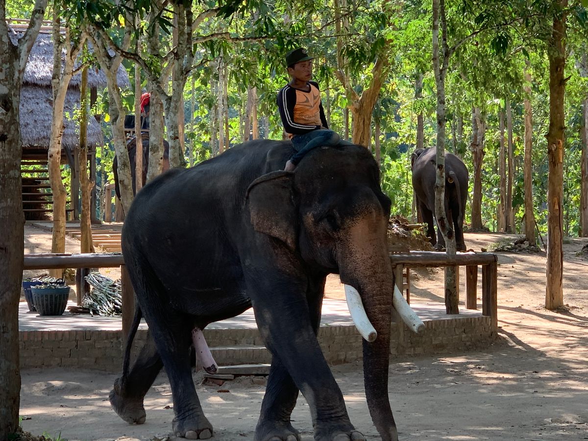 午前中は1時間の象乗りを2回、餌やり1回、象語を覚えるのを40分程度。昼食を頂き、午後からは餌やりと水浴びと30分散歩で一日終了。