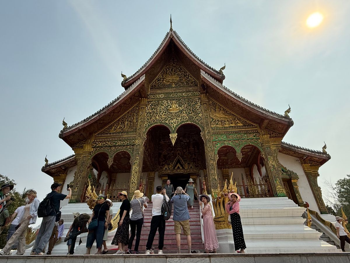 1日コースで朝は三つのお寺、昼から滝とモン族の村、夕方、丘に登るという、結構ハードな旅程でしたが、親切なガイドさんとドライバーさんに助けられ、大満足でした。日没は雨季の雲☁️に阻まれ、見られませんでしたが、ルアンパバーンの美しさを堪能しました。