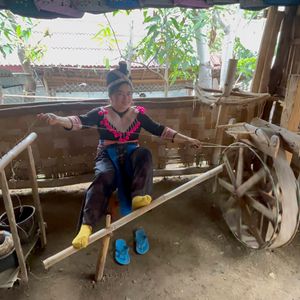 織物の村→メコン川クルーズ→洞窟→洞窟の向かい岸でご飯→メコン川クルーズ→焼酎の村→滝→モン族の村