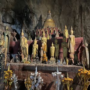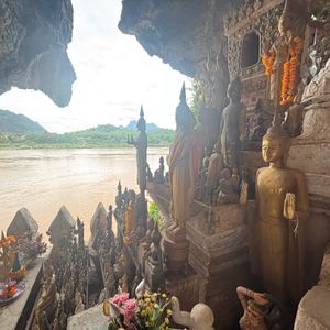 パクオー洞窟(パークウー洞窟)はメコン川沿いの絶壁をくり抜いたようにある洞窟で、その内部には住民たちが運び込んだ新旧さまざまな仏像が、約4000体も置かれています。洞窟内からは雄大なメコン川を見下ろすことも出来、仏像とメコン川の美しいコラボは必見!