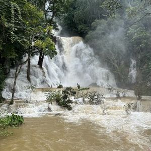数日前の大雨の影響で、クアンシーの滝が本来のエメラルドグリーンではなかったとのこと、少し残念な思いをされたことと存じます。しかしながら、「迫力がある滝」として、その時ならではの自然の力強さをお楽しみいただけたご様子が伺え、大変嬉しく思います。