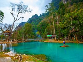 余り人のいないラオスの田舎で1人でのんびりと...とはいえ、ラオスの列車はチケット取れるか微妙だし、現地での交通手段も体力的に面倒。ということで、1人だと多少値段は張るけどツアーを利用。
