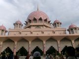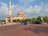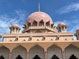 そこから、また約1時間かけて、行政都市プトラジャヤにある「ピンクモスク」に行きました。ガイドのキョウさんが、都市の成り立ちやそれぞれの建物の説明をしてくださいました。観光客が多かったのですが、内部の見学が終わった後、キョウさんとモスクの外周を歩きました。私たち以外は誰もおらず、静かな中で人工的に造られた!川の対岸にある行政関係の建物や鉄のモスクを眺めました。