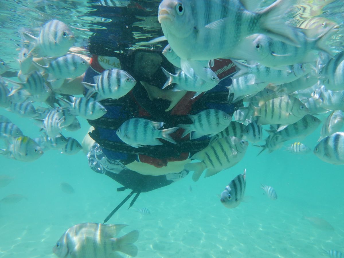 サピ島はサンゴ礁を守るため泳げる範囲は区切られていましたが、魚が近くまで寄ってきてくれました。海鮮BBQもおかわりができ、満足です!