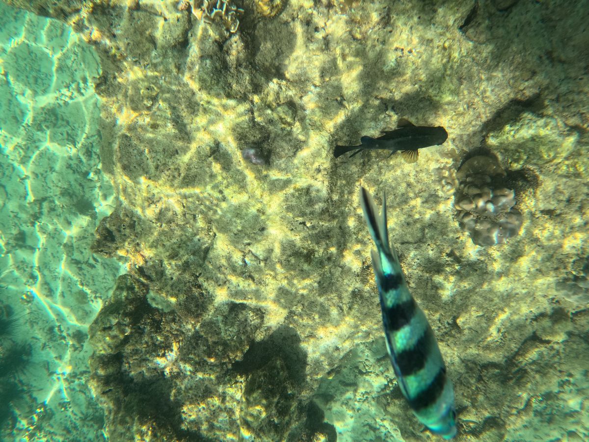 サピ島の海ではシューノーケリングを借りて海の中を覗くと、足の着く範囲でも手があたりそうなくらい綺麗な魚がたくさん泳いでいて、夢のような海でした。