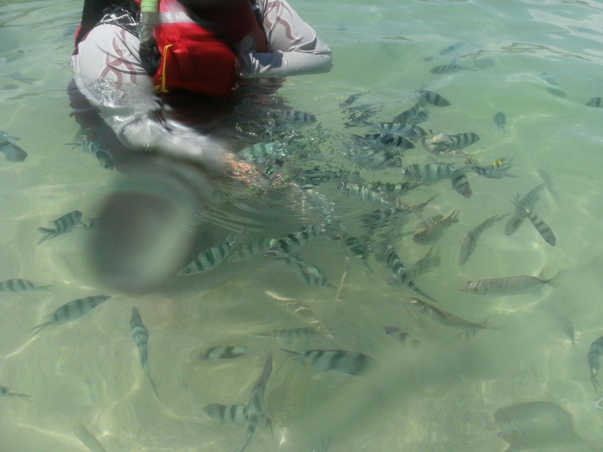 障害のある息子と家族で参加しました。こちらのツアーは日本人限定ということもあり、日本語の通じるガイドさんで、安心して参加できました。荷物はしっかりと見張っていてくれるので、海に入るのも、バイキングの食事を取りに行くのも安心です。ついでに息子のお守りもしてもらいました。前日、リバークルーズで大雨になり蛍観賞ができなくなり、海が濁るんじゃないかと心配しましたがそんなこともなくきれいに見れました。以前餌付けしていたといいこともあり、結構浅瀬でもいっぱい魚を見れました。また機会がありましたら参加させてもらいます。