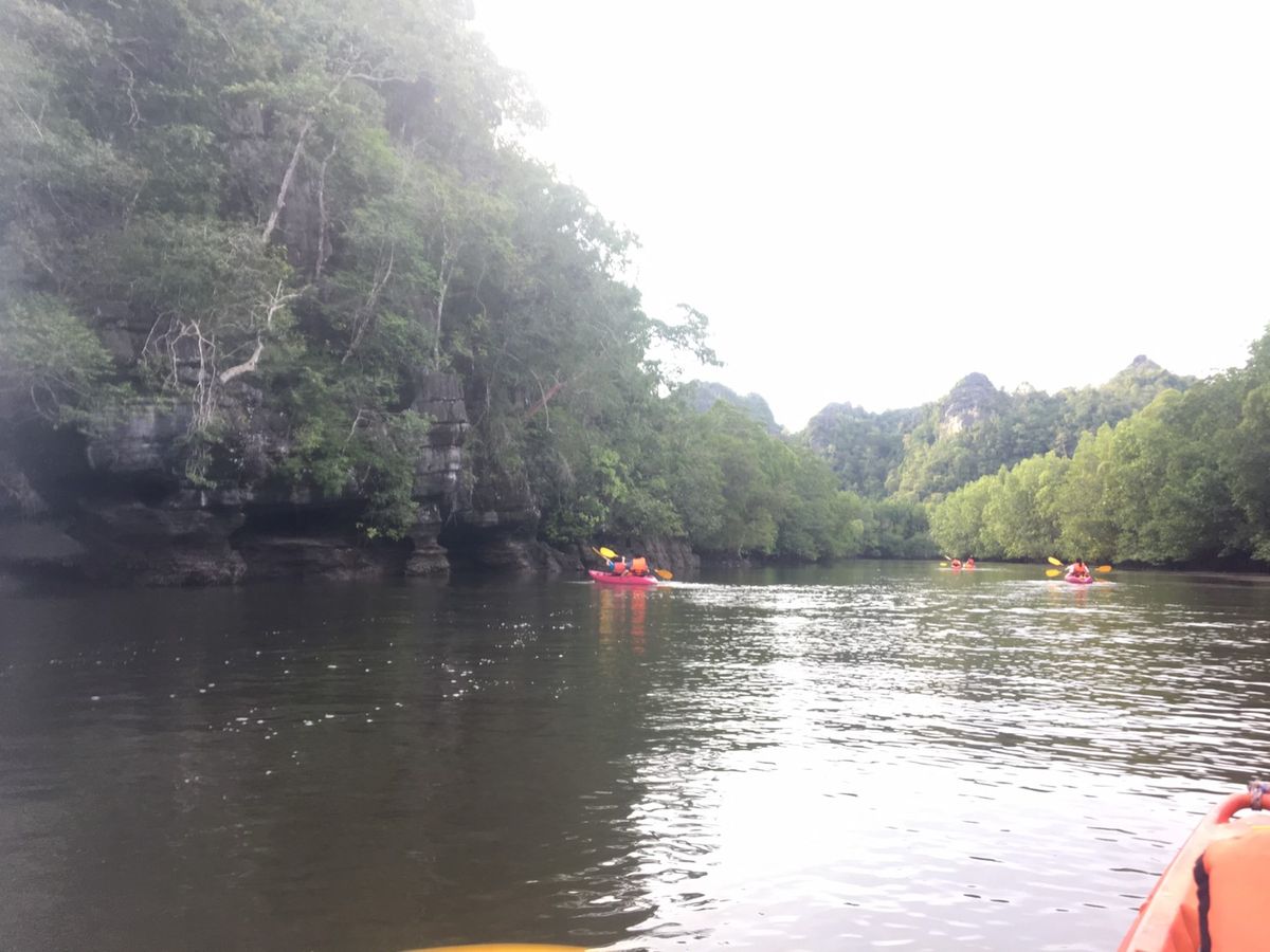 GWも終わったシーズンオフの新婚旅行中にお邪魔しました!シーズンオフだけあって我々夫婦のみのマングローブ探検ツアー、ガイドのボーイさんとマンツーマン。カヤックで転覆する人もいると聞いて最初は緊張しましたが、練習を経てボートで上流まで行き、いざ本番を迎えると今まで体験した事のない景色にただただ感動。カヤックにも徐々に慣れていき無事転覆する事なくゴールまで辿り着けました。