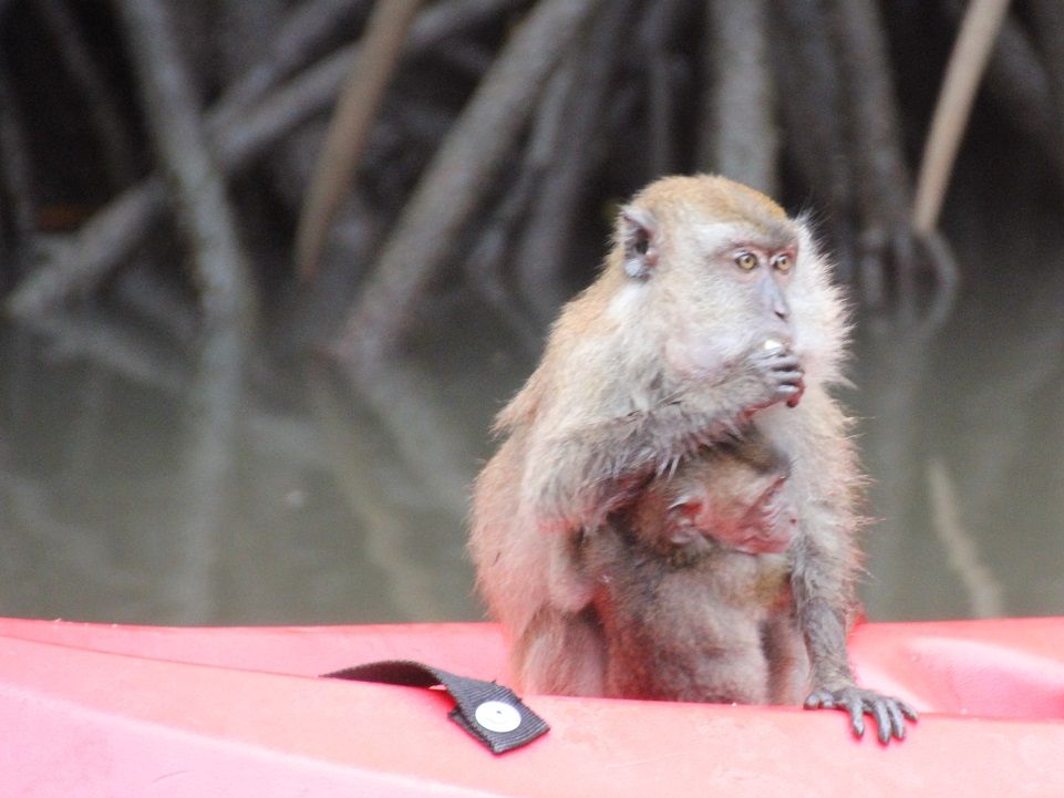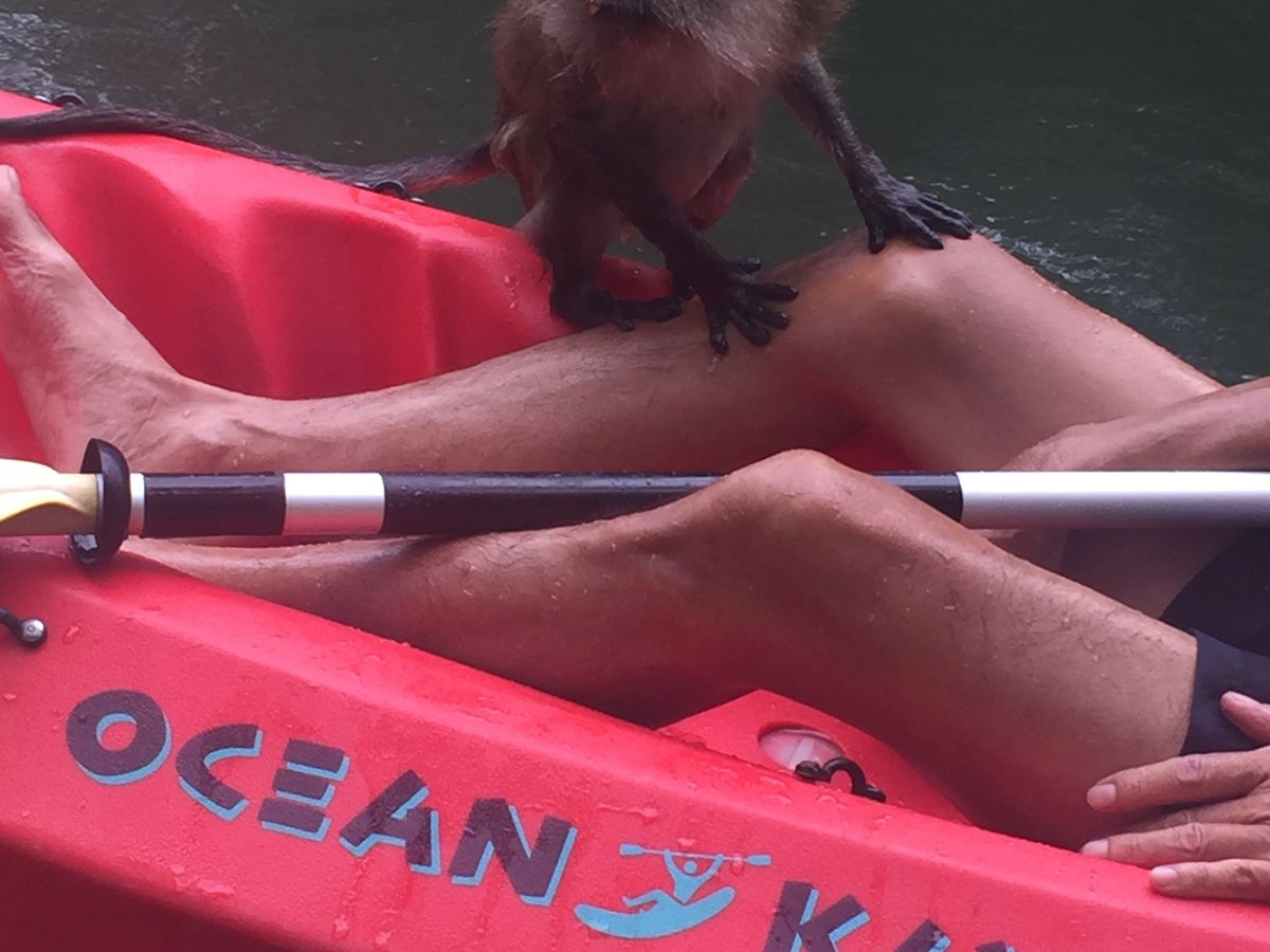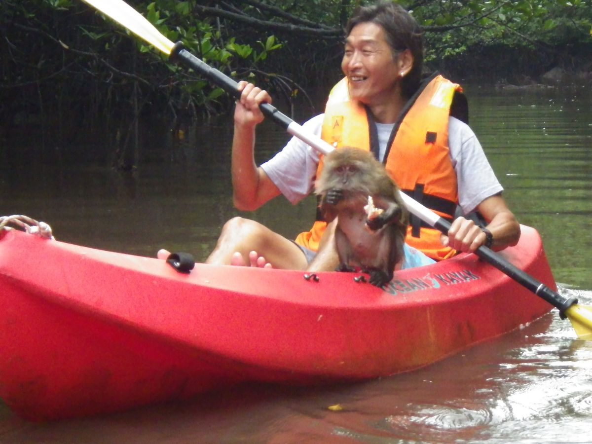 野生の猿がガイドさんのカヤックまで泳いで来たのには感動しました。