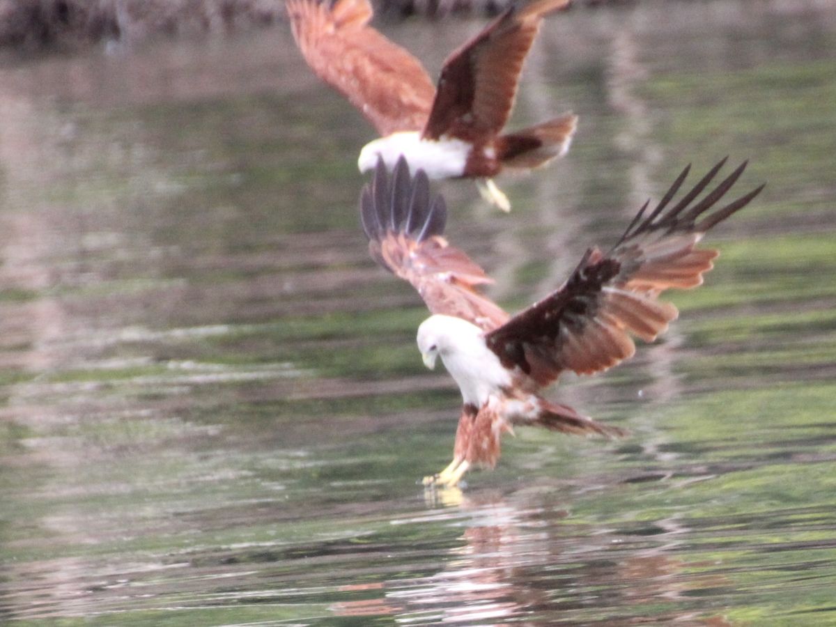 まずボートで鷲の餌付け場へ向かいます。到着と共にガイドさんが鶏肉を撒くと、どこからともなく多数の鷲?と思える小型の鳶?のような鳥が出てきました。それはそれで、迫力があり良かったです。その後、カヤック練習場で少し練習後、ボートにカヤックを積んだり引っ張ったりして上流へ移動し、カヤックを開始します。まず、可愛いサルがガイドさんのカヤックに泳いできました。その後子連れの母サルもガイドさんのカヤックに木を伝って乗り込み餌をおねだり。カヤックでマングローブの中を移動しながら、ガイドさんが撮影スポットで写真を撮ってくれます。(その時も名前を完ぺきに覚えていました)最後に洞窟をカヤックで通過して、カヤック終了です。ボートでカヤックを練習した近くの水上レストランへ移動し、夕食(この手にツアーの食事にしてはまずますな内容)を食べてツアーは終了します。