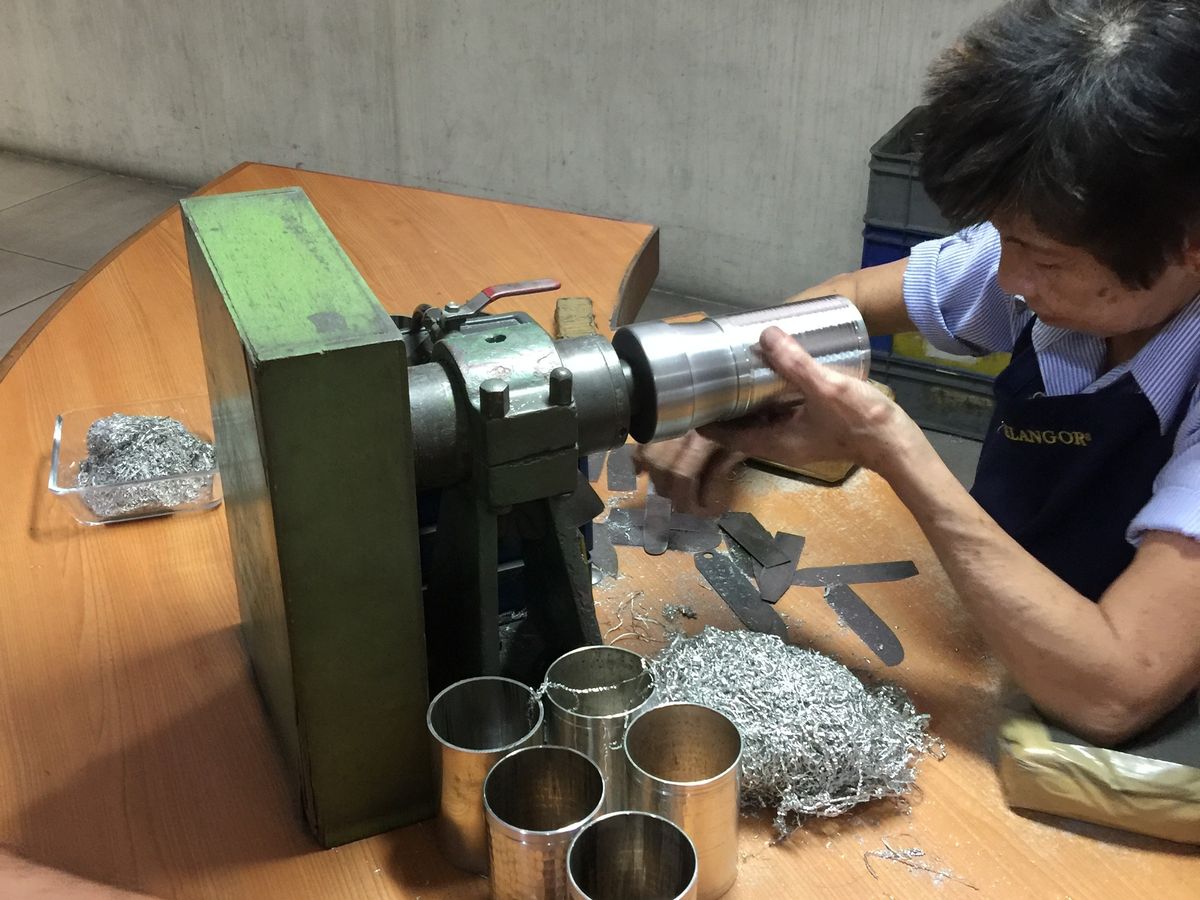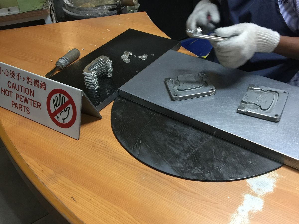 ピューター工場は中国人ツアーで満杯でしたが、製品製作体験は私たち2名だけでした。