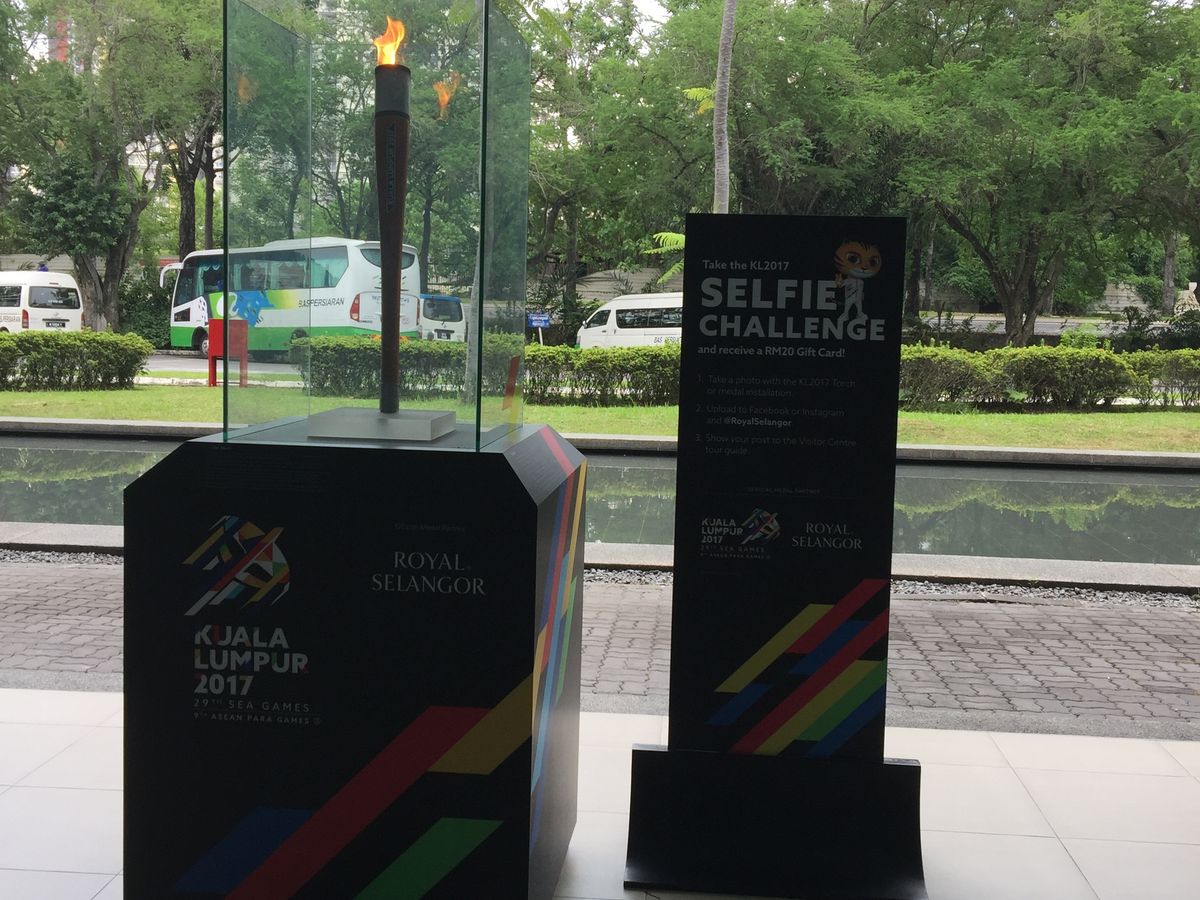 ピューター工場見学では、東南アジアスポーツ大会のスポンサーのため、大会期間中ということもありメダル作製の過程も見学出来ました。また、体験では、特別に、スポーツ大会のマークも入れてくださいました。
