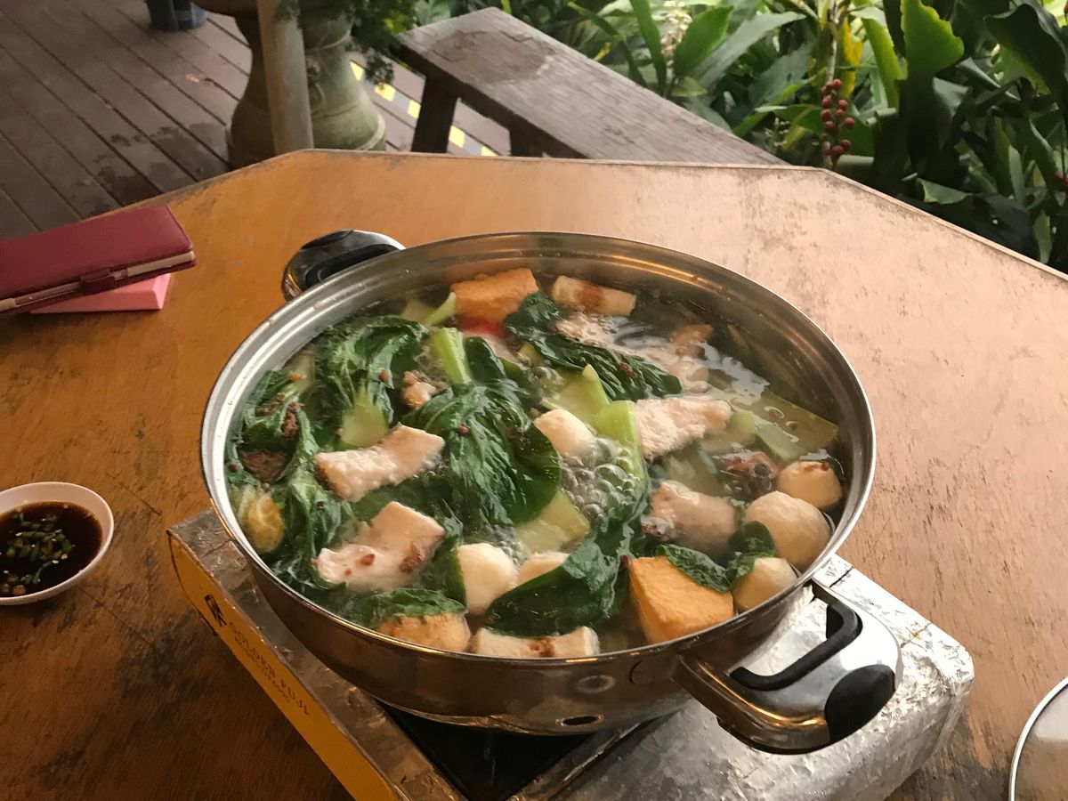 ケーブルで上がった先の山の中のレストラン、スチーム鍋ディナーもお野菜ヘルシーな鍋でお味もあっさり日本人向き、お腹一杯でした。山の上は太陽が沈むとひんやりと肌が気持ちよく、ゆっくり時間をとって頂いてたのでありがたかった。のんびりレストランの庭の猫が戯れ、オニヤンマが飛び、南洋植物に癒され、素敵な夜を過ごせました。