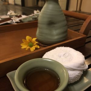 行くと冷たいおしぼりと冷たいジンジャーティーを出してくれます。