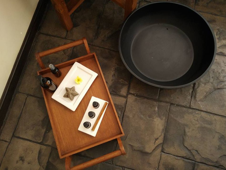 面してるので足湯のあとスクラブマッサージを受けシャワーを浴びサウナそしてお風呂まで周囲を気にすることなく動けました。そして、甘いジンジャーティーとお菓子を頂き、メインのマッサージは2人係でした。リラックスできた時間でした。