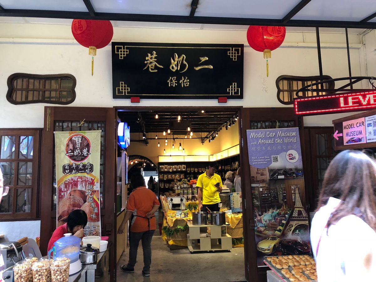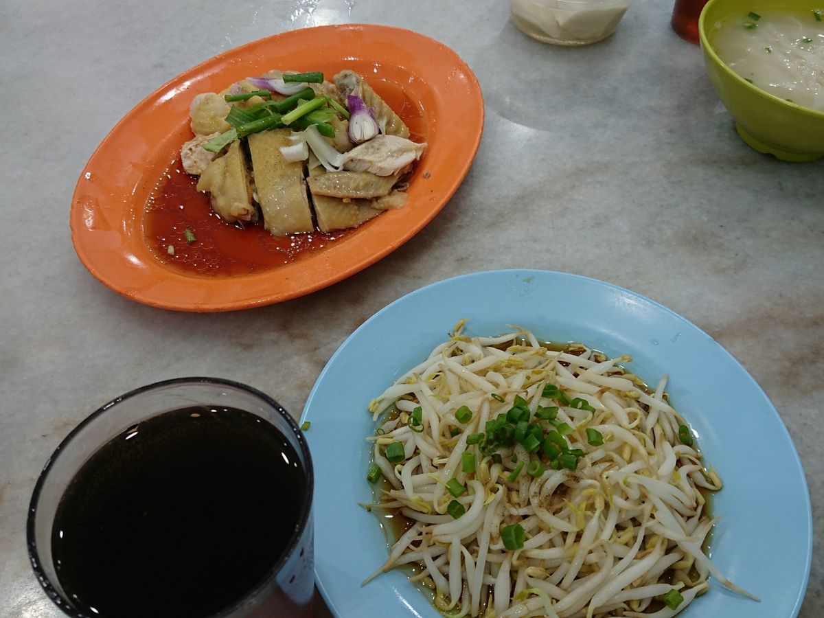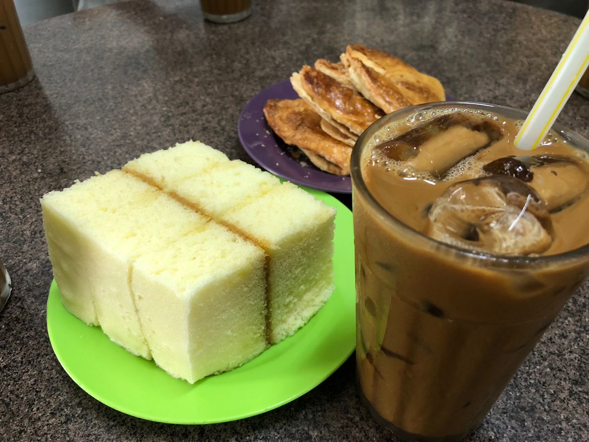 食事はチキンライスやもやし炒めなど、名物料理をいただきました。直後、ちょっと歩いて、豆腐にシロップをかけたデザート。さらに旧市街を散策して、ホワイトコーヒーとパイとカステラっぽいお菓子。