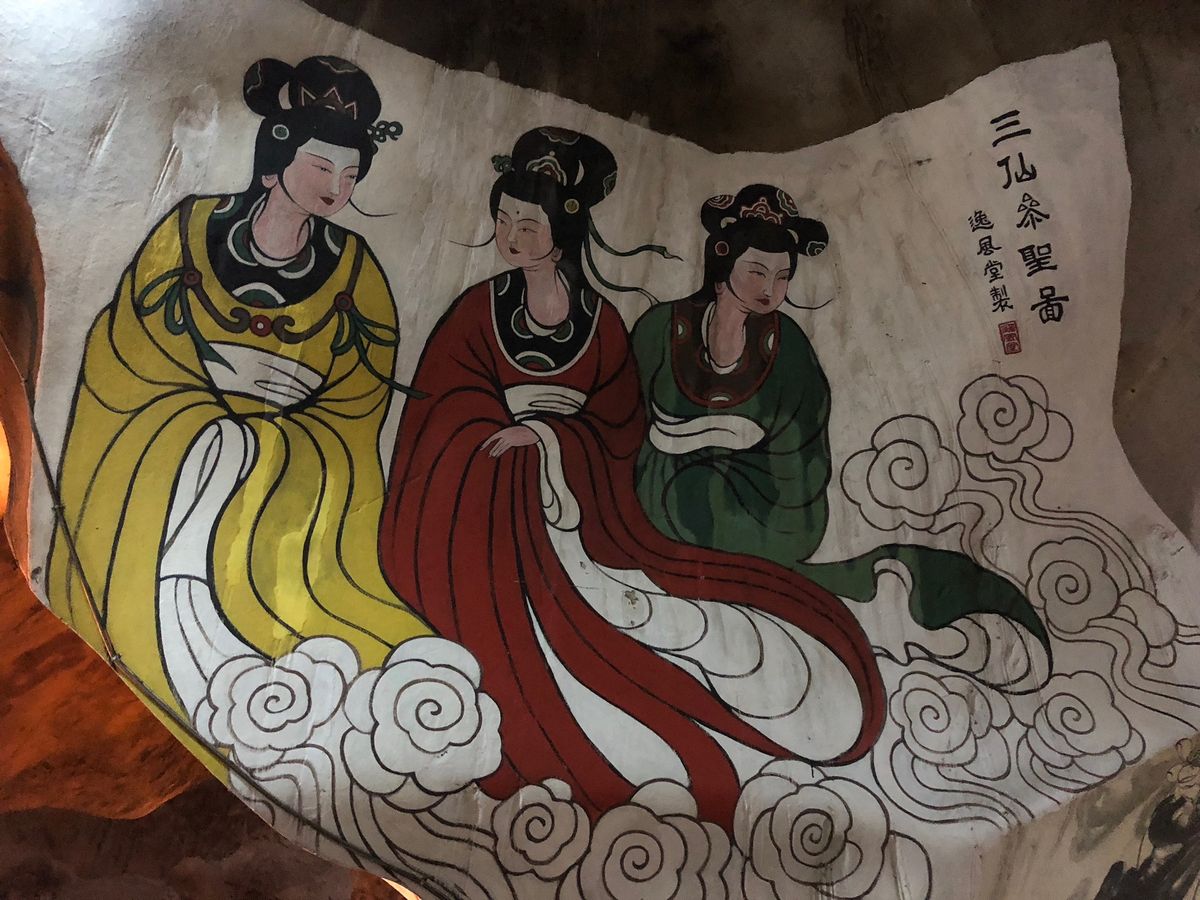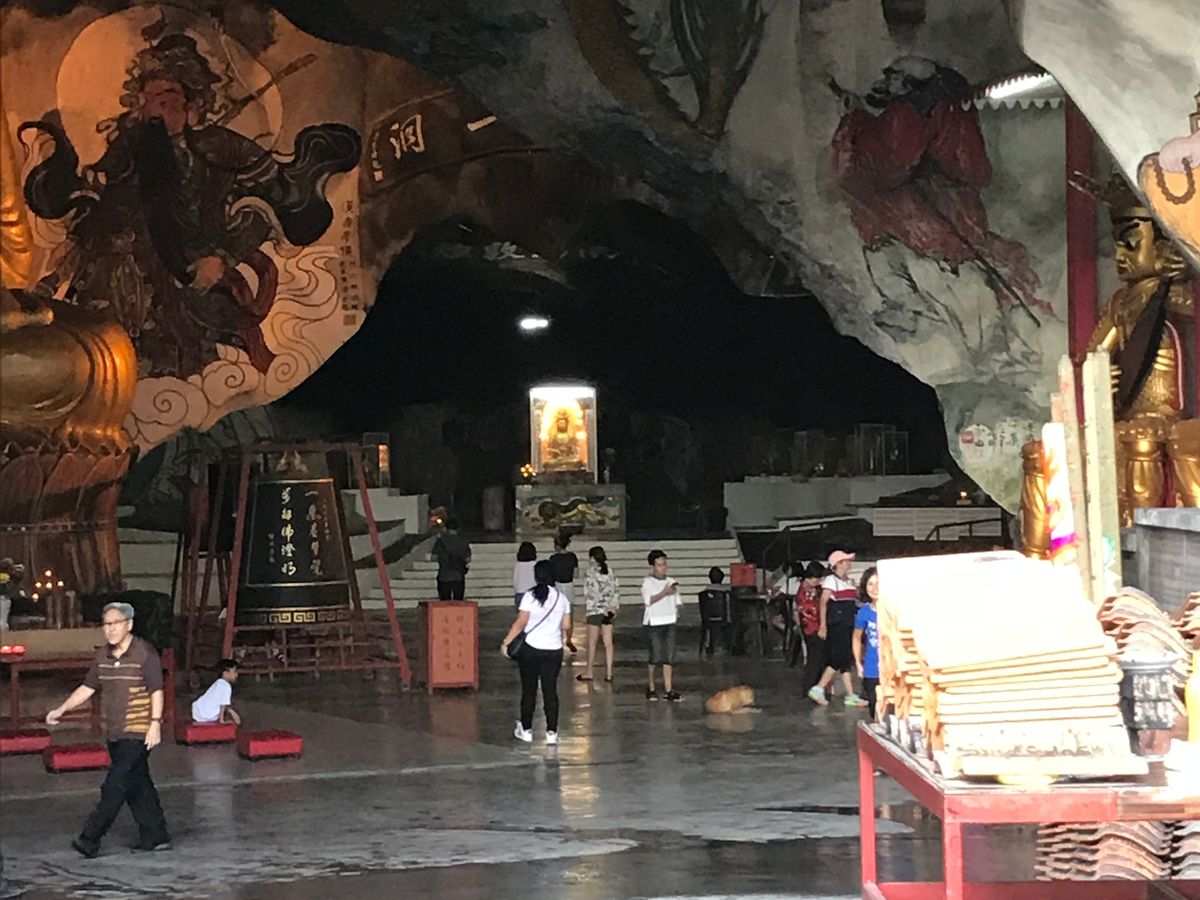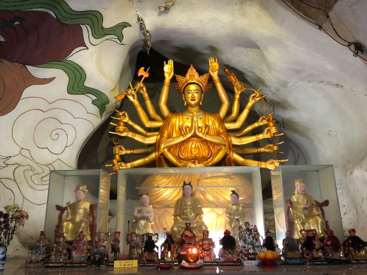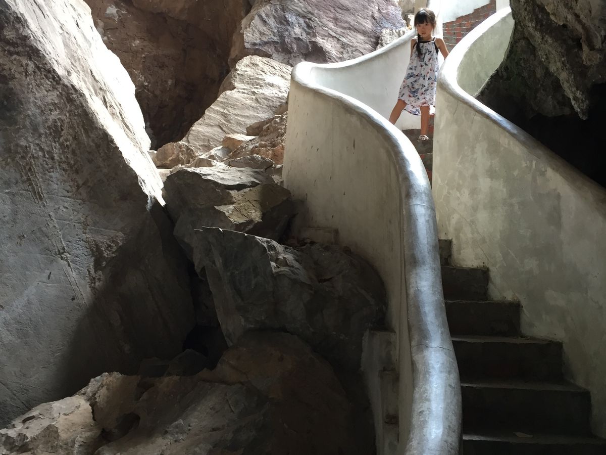 それから、霹靂寺という洞窟寺院に行きました。洞窟の中には色とりどりに描かれた壁画があり、とても綺麗です。さて、ここから階段を登って展望台に行くのですが、かなり急で足場もあまり良くない階段です。それでも登ってしまうと見晴らし最高です。