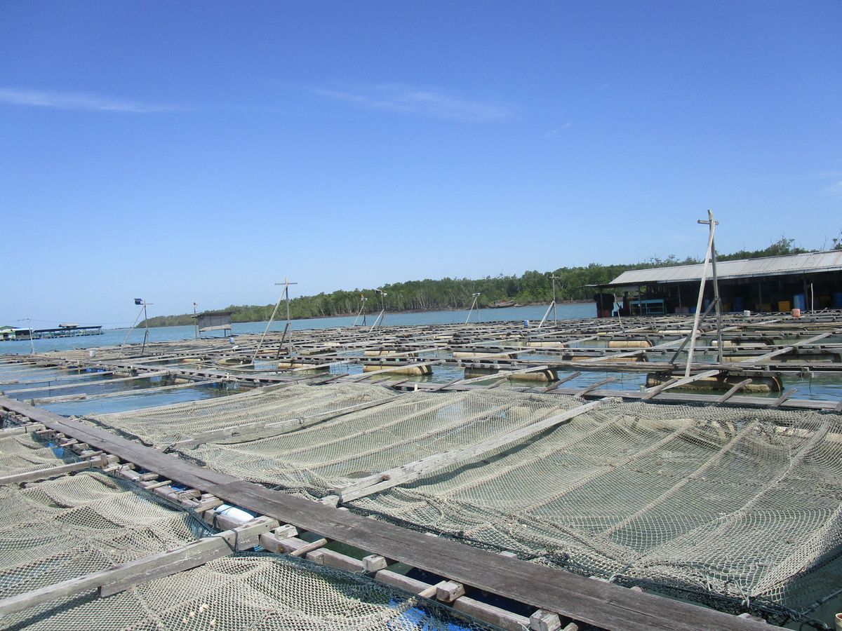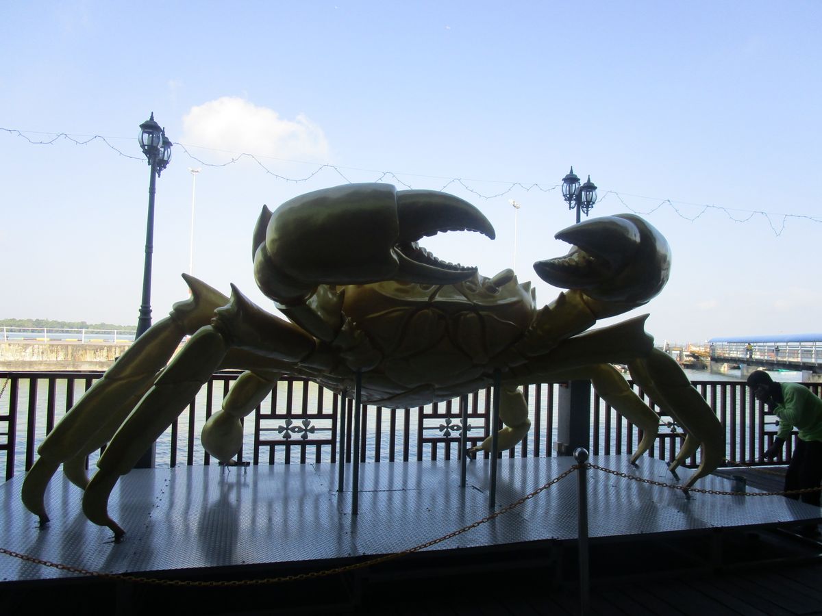 20分遅れた電車に揺られ、だんたんとヤシの木の茂る田舎の風景に移っていく景色を眺めているうちに到着。船は中国の団体さんが同乗で、ちょっとうるさかったですが、これが東南アジアだという感じでした。海上集落の続く島に到着。桟橋の下にはカニがたくさん動いてます。さすが、カニ島!。その後、小舟に乗り替え、マングローブの森を見ながら、スズキやカニの養殖筏を見学。潮風が気持ちいい。