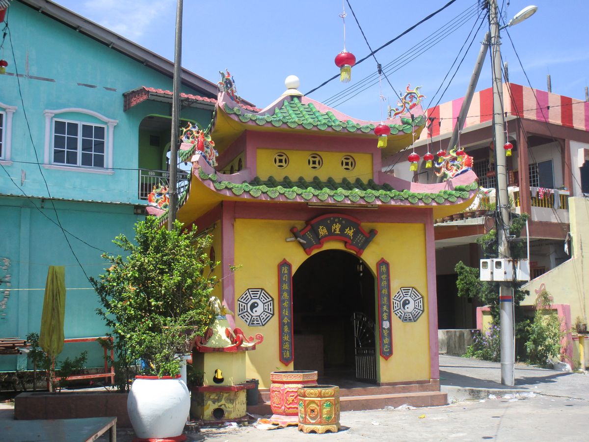 「海辺のモスク」の後はお土産屋さんに寄ってからマレーシア最古の仏教寺院前でバンを下車、ガイドの王さんと一緒にオランダ広場まで歩いて観光です。