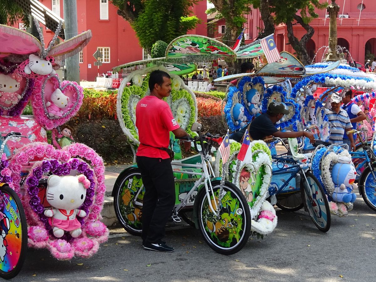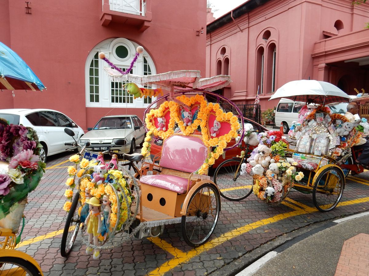 時間を有効に使うために1日ツアーを利用しました。想像していたよりも内容は充実していて、ガイドさんの説明も分かりやすく、充実した1日となりました。エキゾチックな街並みはシャッターポイントも満載。トライショー乗りもおもしろく、自転車なので坂道になると「降りて歩いて」(多分そう言っている)歩かされる笑える状況もあり。また、昼食のニョニャ料理は、おすすめのおいしさです。観光自体は駆け足になってしまうので、もし次回行く機会があるとしたら、今度は自分の足でマラッカの街をのんびり歩いてみたいと思いました。