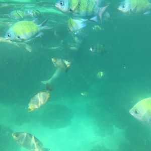 晴天。水はブルー。魚がいっぱいいて、一日楽しめました。シュノーケルセットとライフジャケットも料金に入っているので、水着を着ていけば楽しめます。少し残念なことは海水の透明度があまり良くなかつた。一部エリヤの海にはサンゴ礁があり、綺麗な魚が泳いでいました。
