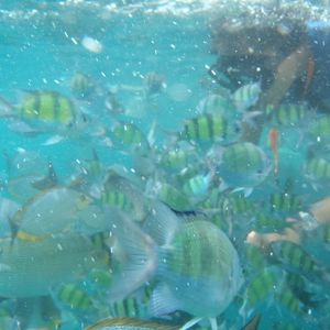 海の透明度は高くないですが、ちゃんと魚が見えるし、魚が人慣れ?しているのか、すごく間近で見えて、大満足です。