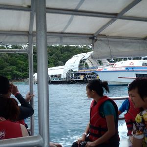 ツアーそのものは良かったです。SWなので、日本の方も多かったですしガイドのジョーさんは日本語も上手で親切でしたよ、旅猿にも出てたとかで、一緒になった方に教えて頂きました。私の住む地方では、放映されてないので・・・。ハーバーからスピードボードで10分程。魚も多く浅瀬でもびっくりするほど魚がいます、あまりきれいな魚はいませんが・・・。島に向かって左側は、赤旗(波が高い?)で遊泳スペースを狭められていました。ちょっとでも餌付けしようもんなら、魚影ができるくらい魚がやってきます。右側はある程度大丈夫だったのですが魚は少なく、白い魚に足を2回もかまれました。結構攻撃してきます。海のきれいさはたグアムタモンビーチや沖縄の方がキレイだった。ゴミも多かったしナマコはいなかったけど。問題は・・・やはり中国の団体客です。お昼のランチの列には割り込む、食べたものは片付けない、食べかすが机の上に山盛り、なぜかパンツ類を干している、大声をあげている、後ろにおいてたシュノーケルを持って行く、・・・などなどなど。