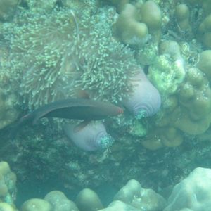 以前タイでは沖で潜らせてくれたりしたので、そんなイメージでいきましたが、残念ながら浅瀬で覗く程度です。