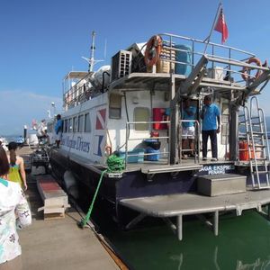 一人で参加しました。生まれて初めてのダイビングです。ダイビング前のブリーフィングでは現地人での英語説明でしたが、日本語も少し交えながらでしたので英語力が乏しい私でもだいぶ理解出来ました。いざ潜水開始、背中からスタッフがサポートしてくれます。初期はまめに手の合図で大丈夫か?と何回か確認してくれます。最初数分は少し馴染めず少し苦しかったですが、大丈夫と返答。そのうち慣れてきて落ち着いて呼吸できるようになりました。そうなると、とても楽しい。あっという間に時間が過ぎて終了です。1回でも充分楽しかったです。弁当を食べてから14:40までシュノーケリング。これもとても楽しかった。橋の下にたくさん魚がいますよ。あと日焼け止めはしっかり塗った方がいいでしょう。後頭部やふくらはぎなど裏面が日焼けしやすいので注意してください。