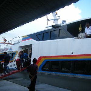 ? 遠すぎる:ペナン島から2時間大型高速船に揺られます。高速船が汚く、波が高く、めったに船酔いしない私でも相当気持ち悪くなりました。トイレが非常に汚くて気持ちが萎えます。