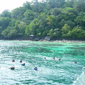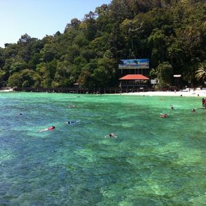 ペナン島の乗船場からパヤ島まで約1時間半かかります。パヤ島の海の透明度はマレーシアで一番と言われておりますが、透明度が高いのは島のまわりのサンゴ礁がある一部分だけです。それなりに魚もたくさんいますし、小さなサメもいたりしてシュノーケリング目的で遊ぶには最高かと思います。ダイビングをする方はボートで違う場所に行ってたようなので詳しくはわかりません。もっと海の色が青々としてるのかなと思っていました。もう少しペナン島から近ければ大満足です。
