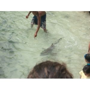 約1時間の航路ということで子供の船酔いを心配しましたが、ほとんど揺れもなく無事到着。シュノーケルではいきなりの魚群の濃さに感激。鮫の子供を餌付けしている付近で、鮫の子を追っかける我が子にはつい笑ってしまいます。ビーチには泳いで上陸するのですが、デッキへの戻りは早めに。出発の30分前には海から上がらないと置いて行かれますよ。