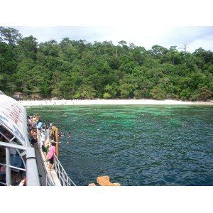 日本人ガイドなしのツアープランを選択。参加日直前に予約したにもかかわらず、連絡調整がしっかりしていてありがたかった!日本人ツアー客は多くなく、なんといっても中国人の騒がしさはハンパない・・・。パヤ島到着後、親切な誘導もあった。参加者全員(国籍関係なく)に対し、ガイドが注意事項などを英語で話す・・・、が、しかし、まっっったく聞き取れない英語!だけど、ぼんやりしている我々を見かねてか、テーブルに来てくれてゆっくり説明してくれたので助かった。海は深いグリーン色。透明度もそこそこかな。何よりここの島で驚いたことは、魚がうじゃうじゃいること!中国人が餌付け用のパンをたくさん持ち込んできてて、なにが楽しいのか、パンを投げ入れて魚が群がるのをおもしろがってた。私には養殖場の餌やりにしか見えず、逆に悲鳴ものだった。魚が怖いと思ったのはこれが初めて。